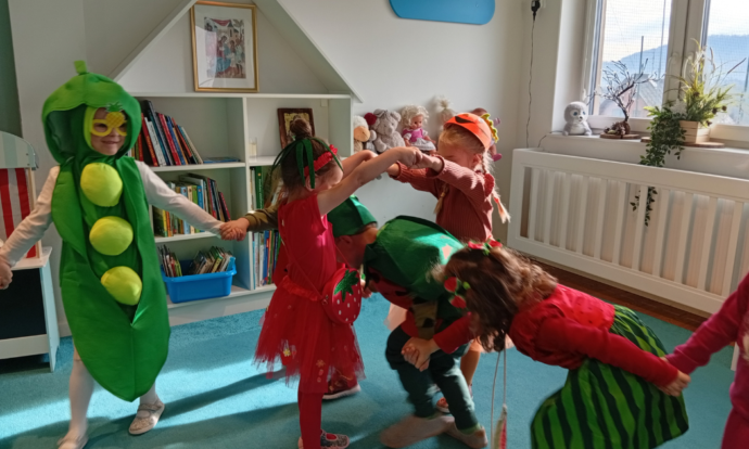 Dzisiaj w naszym przedszkolu, odbyło się niezwykle emocjonujące wydarzenie – BAL KARNAWAŁOWY. Wszędzie zrobiło się bardzo kolorowo, przez przedszkole przemykały bajkowe postaci oraz warzywa i owoce. Taniec, zabawa, podziwianie strojów innych oraz wiele radości! Tym rozbrzmiewało dziś całe przedszkole.