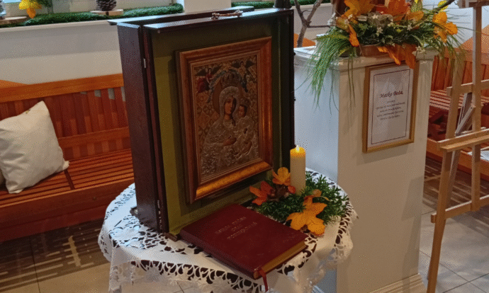 W dniu dzisiejszym do naszego przedszkola przybyła kopia obrazu Matki Bożej z Gietrzwałdu.